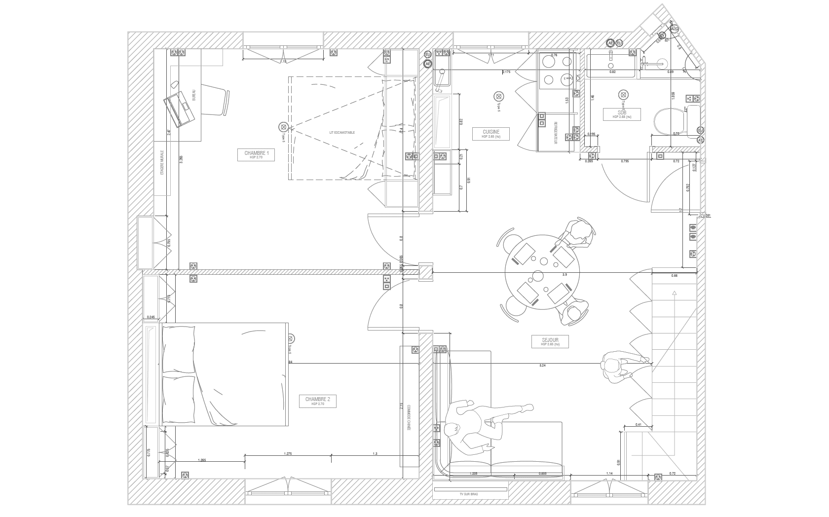 Après un relevé métrique et photographique des lieux, je réalise les plans de l’existant puis analyse la faisabilité du projet en confrontant vos envies aux possibilités spatiales, administratives et budgétaires