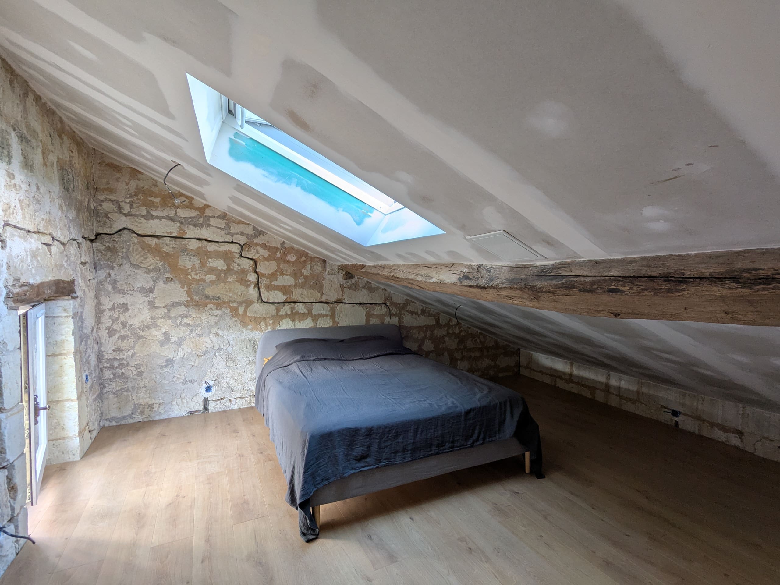 Programme : Le propriétaire souhaite rendre cette propriété secondaire plus confortable pour que l’ensemble de sa famille, petits et grands puissent s’y réunir ponctuellement. Cette maison du 16e nécessite une rénovation d’ampleur pour un budget modeste. Les objectifs sont nombreux : réaliser une étude structurelle, remplacer le plancher intermédiaire entre le 1er étage et les combles, révéler les murs en pierre de tuffeau au 1er étage, remplacer l’ensemble du réseau électrique, remplacer les équipements de chauffe, remplacer les menuiseries intérieures et extérieures, isoler et aménager les combles. Le mobilier et la décoration associeront produits neufs et de seconde main.