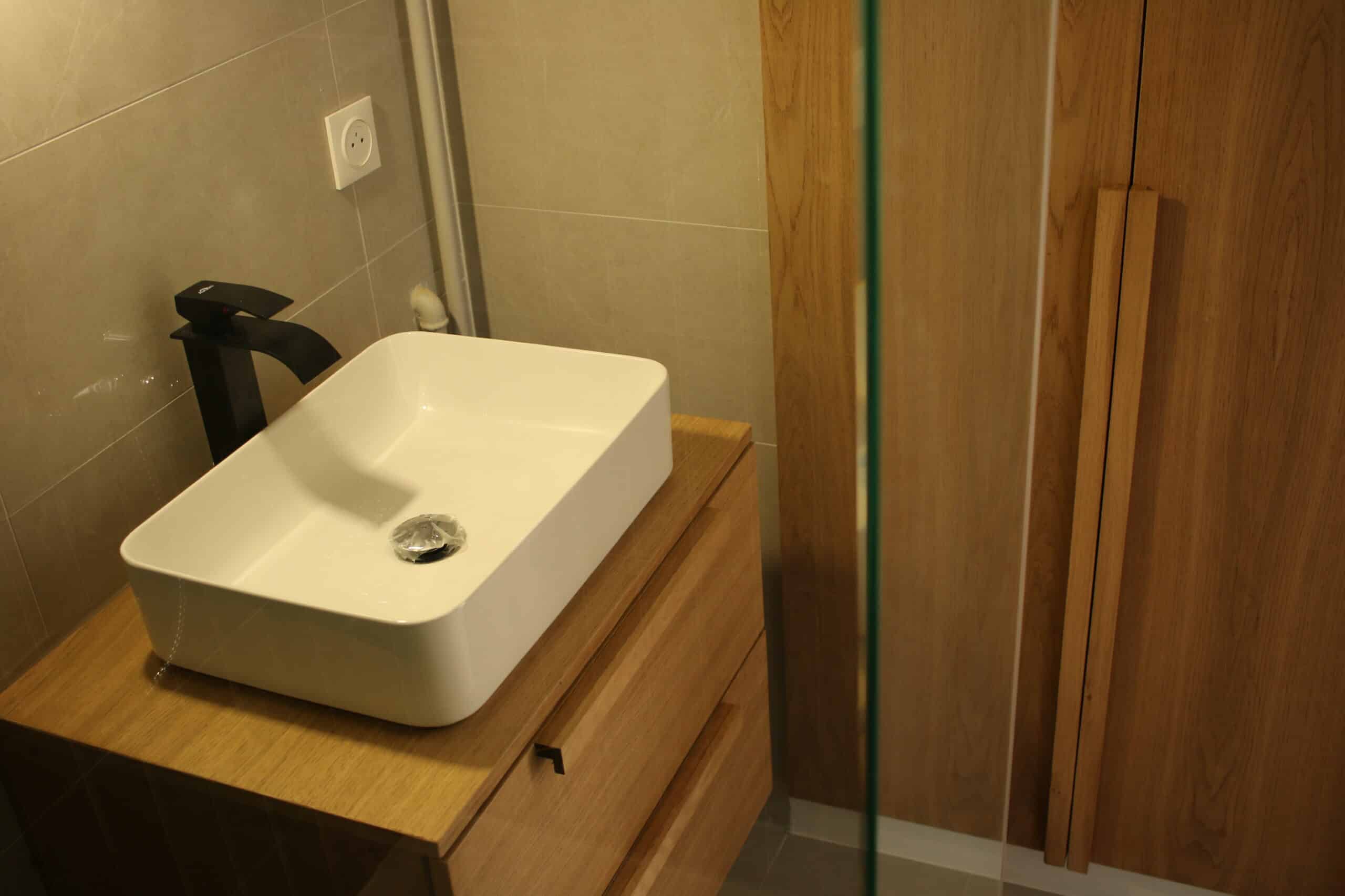 Programme : dans le cadre d’un investissement locatif, le propriétaire souhaite rendre le bien aux normes, neutre et attractif. Cet appartement nécessite un rafraîchissement superficiel pour un budget modeste. Les objectifs sont multiples : rendre plus neutres, faciles d’entretien et attrayants les revêtements, mettre aux normes le réseau électrique et changer les équipements sanitaires vétustes.